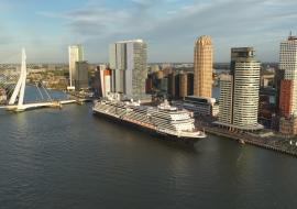Holland America Line's Rotterdam VII departed the city of Rotterdam, the Netherlands, on its historic 150th Anniversary Transatlantic Crossing.