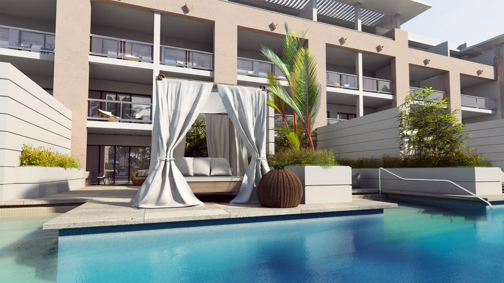 Suites range from 800 to more than 3,000 square feet, with living and dining spaces, soaking tubs, walk-in showers, private balconies with hydromassage whirlpool tubs and outdoor living spaces. The suites also have direct access to swim-up pools.