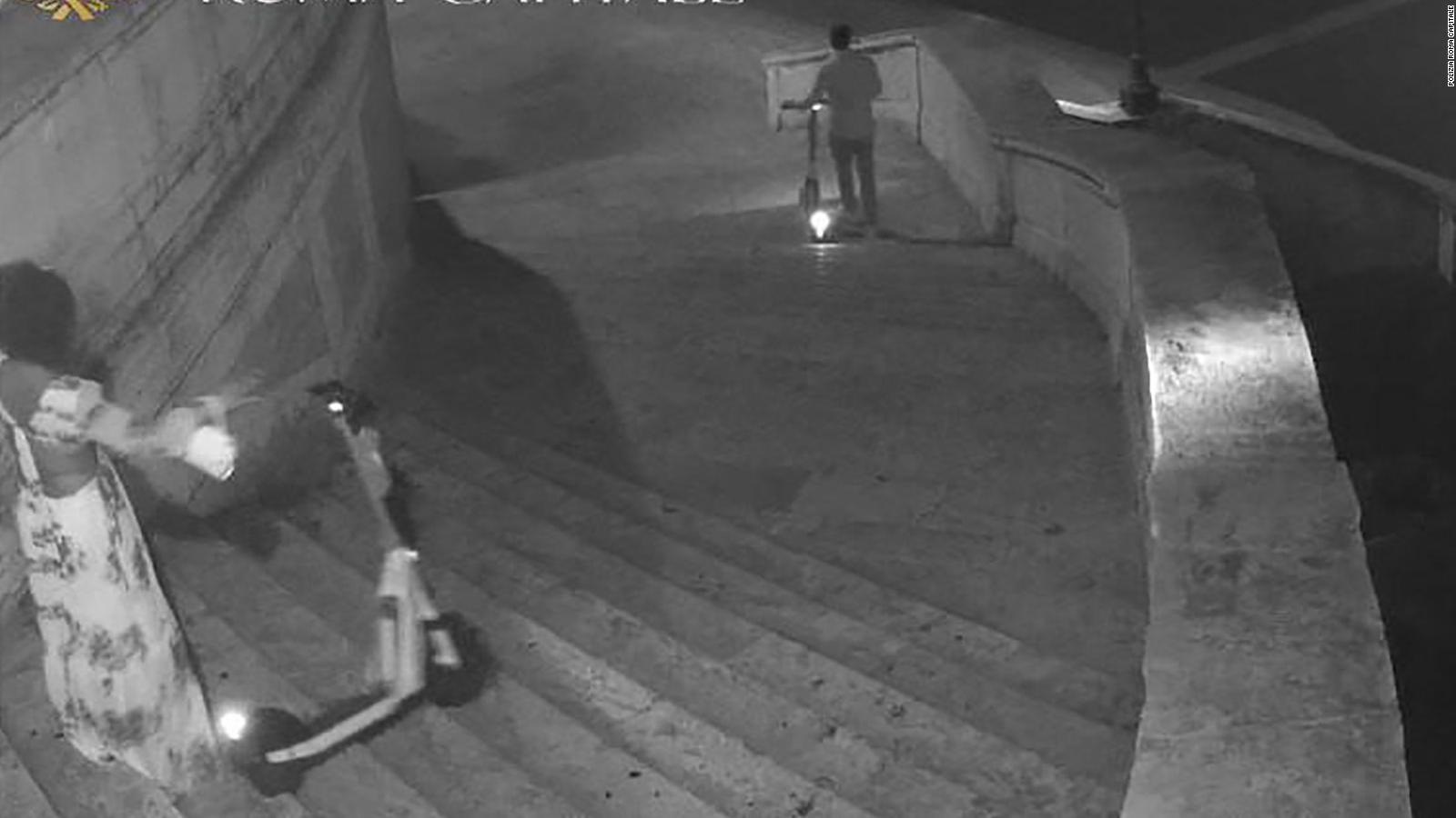 (CNN) — Two American tourists have been fined and briefly banned from Rome's historic city center after damaging the city's Spanish Steps with electric scooters.