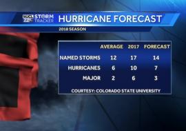 Forecasters are predicting a near-normal to slightly above normal 2018 Atlantic hurricane season, with between 12 to 15 named tropical storms.