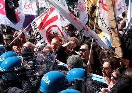 Protests erupted on the eve, with Venetians waving banners and flashing their passports in anger at the city being placed behind a theme-park or museum-style barrier. Photos show police confronting some protesters.